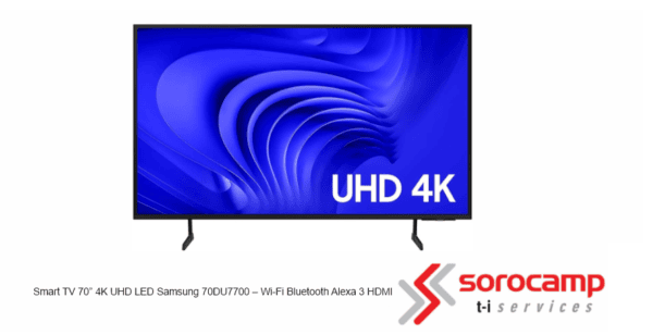 A Smart TV Samsung 70DU7700 de 70″ é a escolha ideal para quem busca uma TV de alta qualidade com um ótimo custo-benefício. Com resolução 4K UHD (3840×2160), tecnologia LED e 60Hz de frequência, ela oferece imagens nítidas e detalhadas, além de cores vivas e vibrantes. O painel VA garante ótimos ângulos de visão, para você assistir a programas favoritos de qualquer lugar da sala. Também conta com o processador Crystal 4K, que garante imagens mais realistas e com cores mais precisas. O sistema operacional Tizen oferece uma experiência de usuário intuitiva e fácil de usar, com acesso a diversos aplicativos e serviços de streaming. Outros recursos que valem a pena destacar são o Gaming Hub, que reúne todos os seus jogos em um único lugar, o Visual livre de cabos, que permite conectar seus dispositivos sem precisar de fios, o Som em Movimento Virtual, que cria uma experiência de áudio imersiva, e o AI Energy Mode, que ajusta o consumo de energia de acordo com o seu uso. Além disso, ainda possui conectividade via Wi-Fi, assistente virtual Alexa e 3 entradas HDMI. Ela oferece uma experiência de visualização imersiva e inesquecível.
